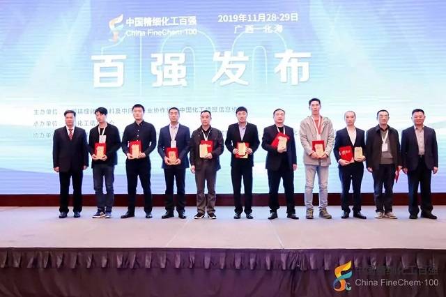 2019年11月28日,在由全国精细化工原料及中间体行业协作组、中国化工情报信息协会在广西北海联合主办,中国化工信息中心承办,北海市铁山港区人民政府、北海市铁山港(临海)工业区管理委员会协办的“第十九届国际精细化工原料及中间体(铁山港)峰会暨2019中国精细化工百强发布会”上,公布了“2019中国精细化工百强”榜单。